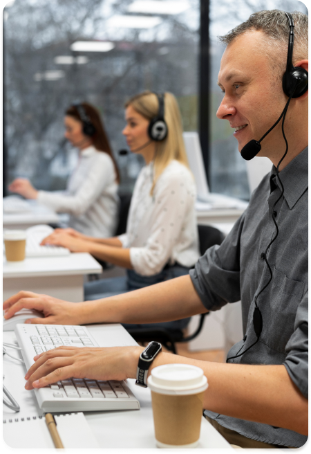 Discador automático inteligente que conecta apenas chamadas produtivas, otimizando o tempo dos operadores.